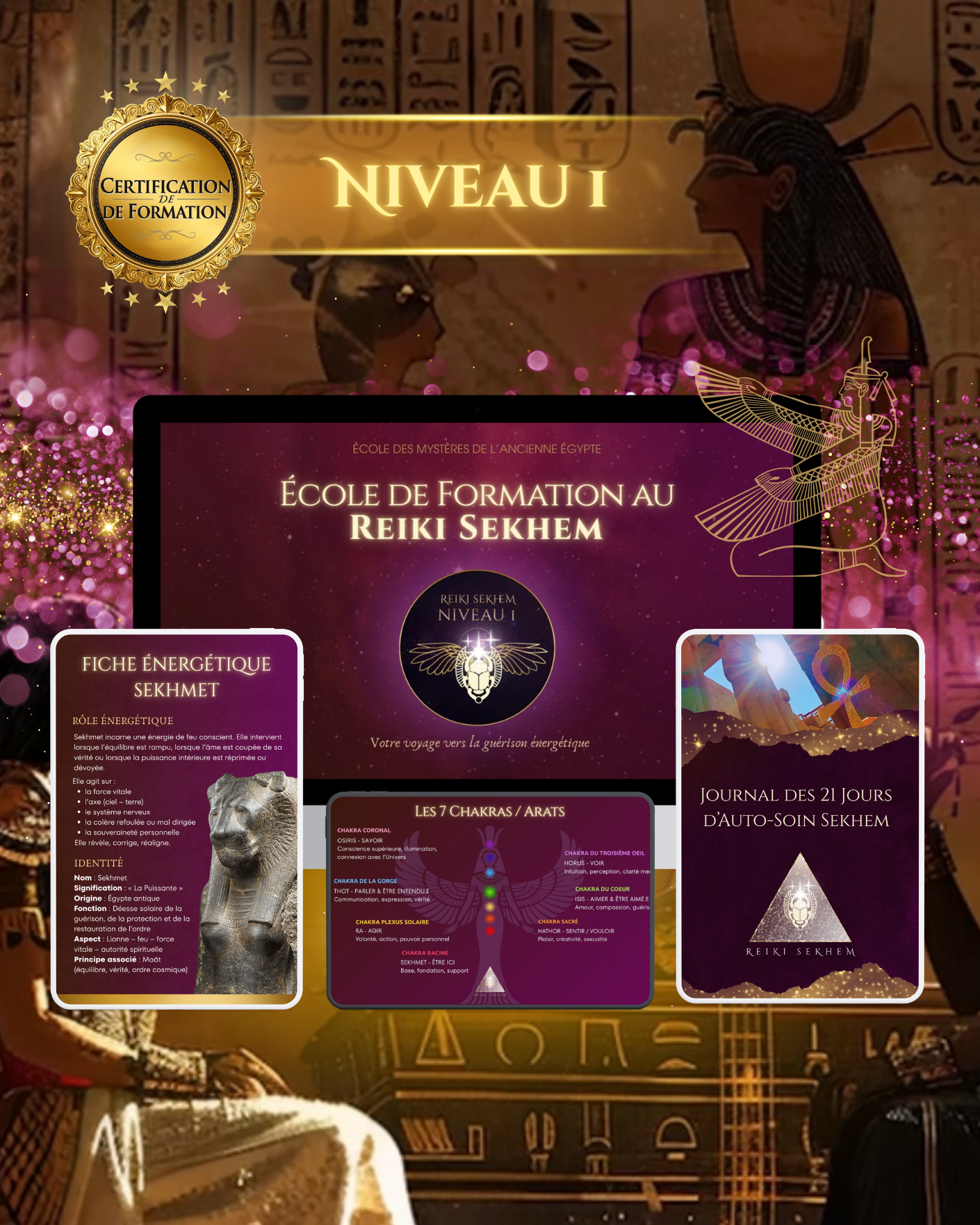 Découvrez l’Académie Reiki Sekhem, un espace sacré de transmission et d’initiation. Retrouvez toutes les informations sur les soins, les formations et les enseignements proposés sur le site, et plongez au cœur de la sagesse énergétique de l’Égypte ancienne.